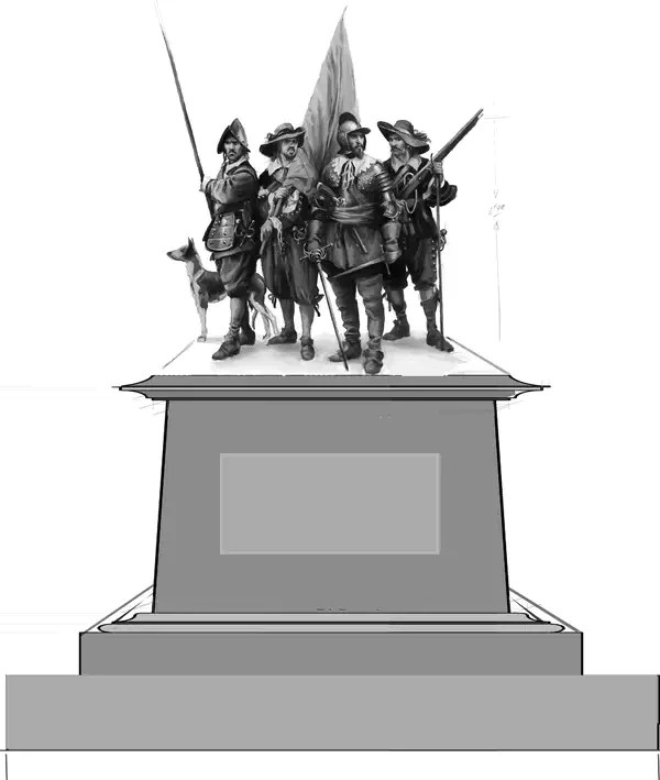 El autor elegido para llevar a cabo este conjunto escultórico será el ilustre y afamado escultor Salvador Amaya. El cual utilizará como base para el proyecto, bocetos y personajes de la obra del también afamado pintor de batallas, Augusto Ferrer Dalmau. Asesorado, también, por expertos historiadores, con el fin de conseguir el mayor de los rigores históricos.